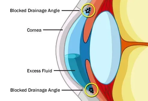 A volte l'angolo tra Iris e Cornea è bloccato dall'iride. Questo provoca glaucoma angolare. Quando l'angolo è bloccato, il fluido non può lasciare l'occhio come fa normalmente, il che porta a problemi di pressione oculare e al potenziale cecità come tutti i tipi di glaucoma. Il glaucoma angolare-chiusura tende ad essere ereditato. Circa mezzo milione di persone negli Stati Uniti hanno questa condizione. Le persone di origine asiatica e persone miopi ne sono molto probabilmente colpite.