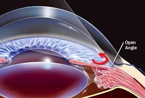 La parte ad angolo aperto si riferisce all'angolo tra l'iride e la cornea che è dove il fluido si scarica dall'occhio. Questa zona è spalancata come dovrebbe essere. Nonostante ciò, gli occhi si scaricano lentamente, il che può portare a troppa pressione oculare e alla cecità potenziale.