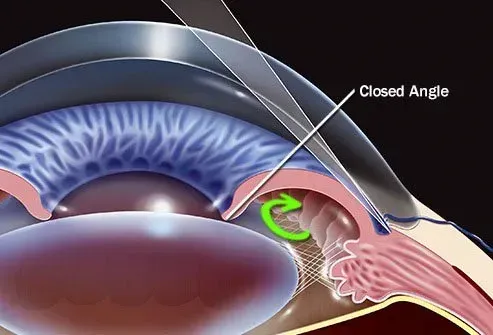 Il glaucoma angolare-chiusura può avvenire improvvisamente (acuto) o lentamente nel tempo (cronico). Quando è acuta questa condizione può essere estremamente dolorosa poiché la pressione negli occhi sale improvvisamente. I sintomi del glaucoma acuto-angolo chiusura includono: