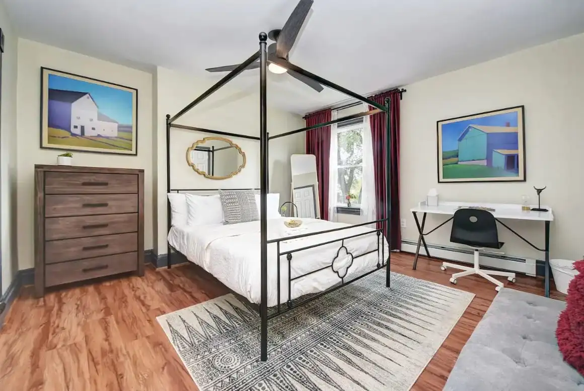 Questo Airbnb può ospitare 9 ospiti alla volta, il che lo rende perfetto per le famiglie più numerose. C'è un'incantevole zona soggiorno e una cucina completamente attrezzata. Parti per esplorare la città durante il giorno e riunisci tutti a cena la sera per condividere storie di viaggio. L'elegante casa è dotata di Smart TV (evviva Netflix), Wi-Fi ad alta velocità e una piccola area ufficio, perfetta se hai bisogno di lavorare sul tuo laptop durante il tuo soggiorno.